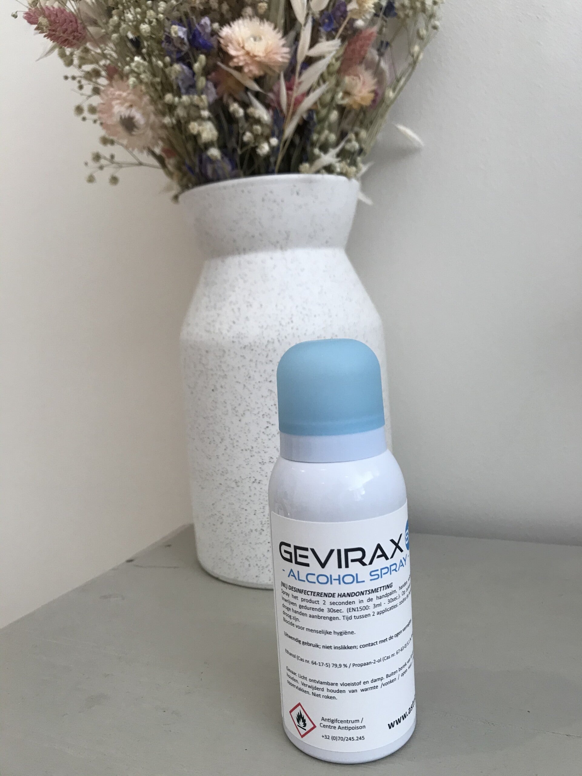 Desinfecterende handgel in sprayvorm.